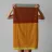 Des blocs de couleurs vives (rouge, orange et jaune) créent une composition en couches sur un fond bleu pâle. Les coups de pinceau visibles confèrent un aspect texturé au dessin minimaliste, évoquant un sentiment de simplicité abstraite.