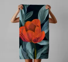 Un gros plan vertical d'art fin d'une tulipe rouge juste avant la floraison, ses pétales étroitement enveloppés dans des couches élégantes. Les lignes délicates et la texture lisse révèlent la poésie tranquille du design de la nature. Cette impression minimale mais frappante est idéale pour les intérieurs sereins, les coins de méditation ou comme accent mural raffiné dans une chambre à coucher.