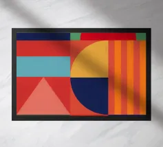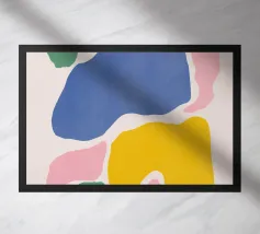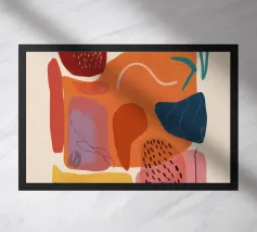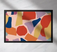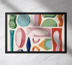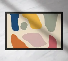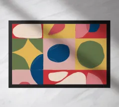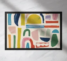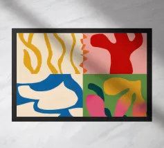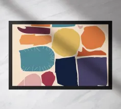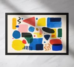 Une composition abstraite moderne et ludique présentant une disposition en grille de formes organiques colorées. L'œuvre ressemble à un puzzle sophistiqué et équilibré de formes et de couleurs.