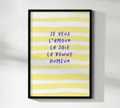 Les affiches typographiques sont parfaites comme élément central ou intégrées dans un mur de galerie. Un mélange de styles d’écriture différents ou une association avec des motifs abstraits et des photographies crée un ensemble harmonieux. Les designs en noir et blanc sont particulièrement élégants, mais des accents dorés ou pastel apportent une touche moderne.