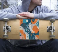 Un sofisticato motivo astratto che combina motivi di foglie botaniche con forme geometriche art déco nei caldi toni della terra: arancio ruggine, terra di Siena bruciata, grigio e crema. Questo disegno artistico fonde elementi floreali organici con forme geometriche moderne per un'estetica raffinata e vintage-moderna. Perfetto per gli amanti dell'art déco, per gli appassionati di arte astratta, per i fan delle tonalità della terra e per chiunque apprezzi l'elegante fusione di design botanico e geometrico con colori caldi e naturali.