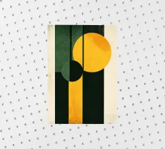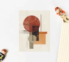 Quest'opera d'arte incarna l'essenza della geometria Bauhaus, intrecciando linee verticali e orizzontali in un gioco ritmico di equilibrio e contrasto. Le tonalità autunnali della terra - rosso ruggine, verde oliva, ocra e beige caldo - creano profondità e armonia attraverso la griglia strutturata. Minimale ma potente, cattura il dialogo senza tempo tra forma e colore, evocando sia il calore stagionale che la chiarezza modernista.