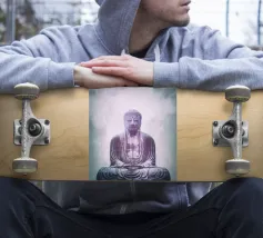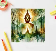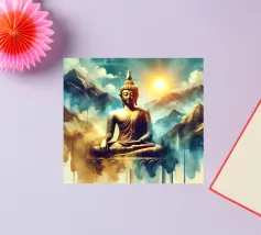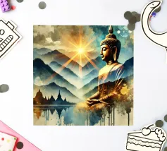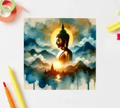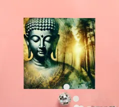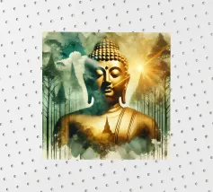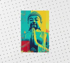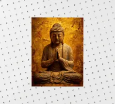 Questo sublime poster mostra una statua di Buddha in posizione di preghiera, circondata da delicati viticci dorati. La rappresentazione fotorealistica con toni caldi dell'oro e freddi dell'argento ricorda l'arte antica dei templi, combinata con una visualizzazione 3D contemporanea. Gli effetti delle intemperie e la morbida patina conferiscono all'opera una profondità spirituale. Perfetto per gli ambienti che devono emanare calma e consapevolezza. Una dichiarazione forte per chiunque apprezzi la saggezza orientale e l'atmosfera meditativa: una spiritualità senza tempo per la casa moderna.