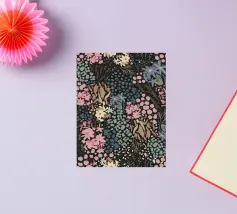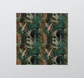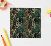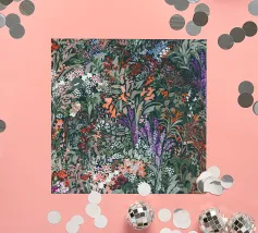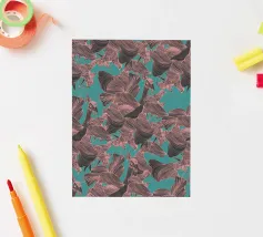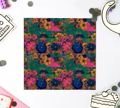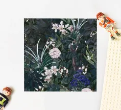 Un lussureggiante motivo botanico vintage con fiori e foglie tropicali di colore verde acqua, arancione, verde oliva e crema su uno sfondo scuro. Questo disegno ispirato alla giungla ha una qualità di illustrazione vintage con elementi botanici dettagliati e toni terrosi. Perfetto per gli amanti delle botaniche scure, per gli appassionati del vintage tropicale, per i fan dell'estetica umorale e per tutti coloro che apprezzano i fiori ricchi e sofisticati con un'atmosfera misteriosa da giardino esotico.