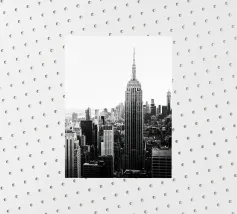 La splendida fotografia in bianco e nero cattura lo skyline di Manhattan, mostrando gli imponenti grattacieli e le loro eleganti facciate in una composizione geometrica da una prospettiva aerea. Con riflessi visibili alla luce del giorno, questo poster di lusso incarna l'arte moderna ed è un'aggiunta elegante agli interni contemporanei.