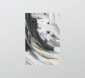 Un'opera d'arte astratta dinamica dominata da ampie pennellate di grigi e bianchi, che creano un potente movimento vorticoso. La tavolozza monocromatica enfatizza la texture e il flusso energetico della composizione.