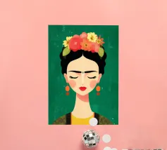Tra imponenti papaveri corallini e palme piumate, una donna si sdraia pacificamente sotto un audace sole rosso, galleggiando su una pozza di quiete. Uccelli bianchi si librano in un cielo da sogno, facendo eco all'immobilità della sua posa. La scena, sullo sfondo di ricche montagne indaco e di un cielo color mandarino, cattura un'armonia surreale tra la natura e il sé, un momento sospeso in cui il tempo fiorisce e il pensiero si dissolve nel colore e nella calma.