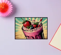 Un rinfrescante frullato verde menta con fragole fresche, servito in un elegante bicchiere, che crea una deliziosa e vivace delizia estiva.