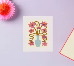 Un'opera d'arte astratta vibrante ed espressiva con una fusione di colori audaci di ispirazione fauvista come il magenta, l'arancione e il nero. Le pennellate e le forme energiche creano un'opera dinamica e appassionata.