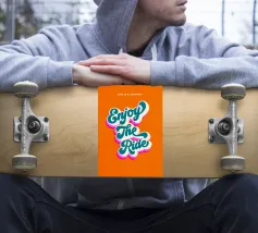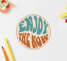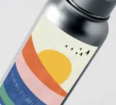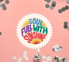 Un motivo solare in stile anni '70: un sole giallo splende in alto con raggi caldi in rosa, arancione e giallo, mentre sotto scorrono onde blu, con la scritta "GO WITH THE FLOW" in un vibrante giallo vintage. Le linee curve e la ricca palette di colori trasmettono leggerezza e una sensazione di spensieratezza estiva. Ottimismo, libertà e relax: un mantra visivo che invita a godersi il momento e ad abbandonarsi al ritmo naturale.