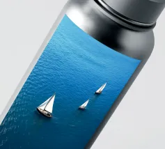 Adesivi realizzati in film PP/PET con laminazione protettiva e diverse tipologie di superficie.
