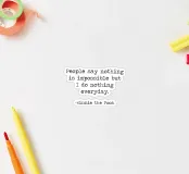 "La gente dice che nulla è impossibile, ma io non faccio nulla tutti i giorni!". - Divertente umoristico Winnie the Pooh famoso Winnie The Pooh A. A. Milne Citazione minimalista in bianco e nero macchina da scrivere tipografia word art famoso detto.