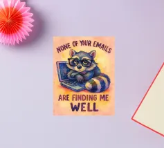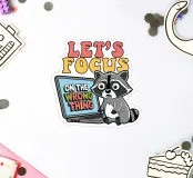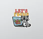 Un procione dei cartoni animati siede davanti a un computer portatile aperto con un testo colorato che recita: "Concentriamoci sulla cosa sbagliata".
