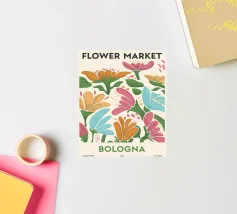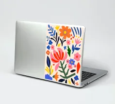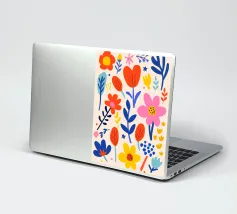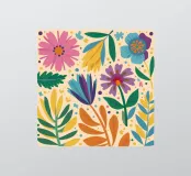 Una bella macchia di fiori selvatici stilizzati e stravaganti è illustrata in un affascinante stile ispirato all'arte popolare, con un delizioso mix di colori e forme che irradiano gioia e bellezza naturale.