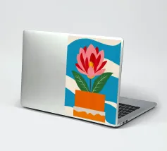 Una composizione astratta presenta una ciotola di fragole in mezzo a un turbinio di forme e motivi organici e colorati, creando un'interpretazione fresca e moderna di un classico dell'estate.