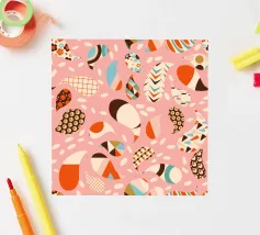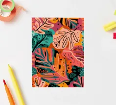 Una vibrante fusione di estetica moderna di metà secolo e boho, questo motivo ispirato al paisley presenta intricati dettagli patchwork con motivi geometrici, floreali e astratti. I toni terrosi dell'arancione, del marrone e del crema si stagliano su uno sfondo verde acqua, creando un'atmosfera nostalgica ma fresca. Perfetto per arredare la casa in stile retrò, per creare una parete elegante o per creare tessuti di grande effetto.