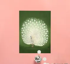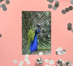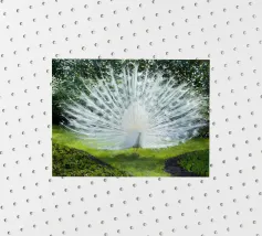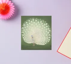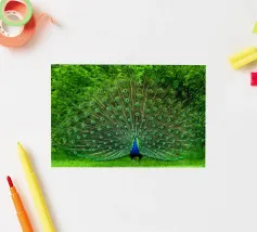 Una fotografia straordinaria che cattura un pavone in un'esibizione completa e ipnotica. I ricchi toni gioiello delle piume e l'imponenza della coda ne fanno un'opera d'arte di grande impatto.