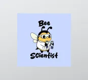 Una simpatica ape in camice e occhiali tiene in mano due provette piene di pozioni colorate. L'illustrazione gioca sul gioco di parole "Bee Scientist", unendo scienza e simpatia in un'unica immagine. Perfetto per chi ama la biologia, la chimica o semplicemente le api con un look da scienziato!