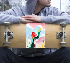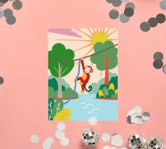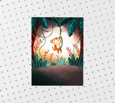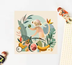 "La scimmia e l'uva" è un adattamento illustrato del racconto classico con un tocco artistico moderno.