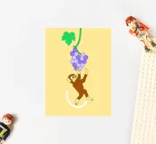 "La scimmia e l'uva" è un adattamento illustrato del racconto classico con un tocco artistico moderno.
