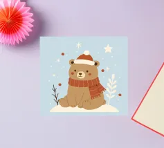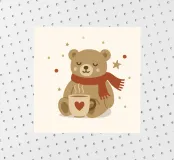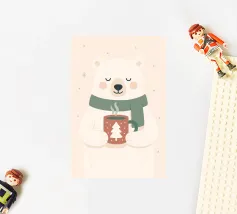 Simpatico orso in inverno con sciarpa e tazza calda - perfetto per un look accogliente, per l'inverno, per il Natale e per tutti coloro che amano i simpatici motivi animali.