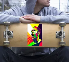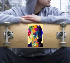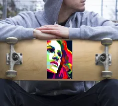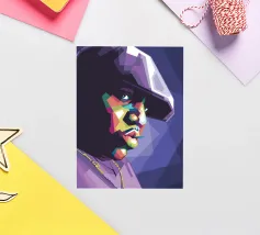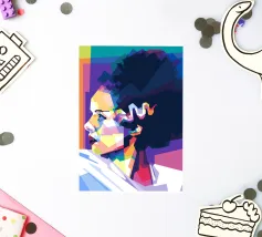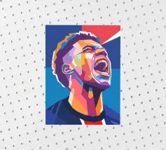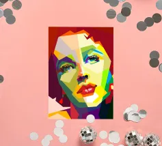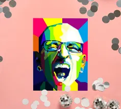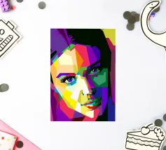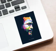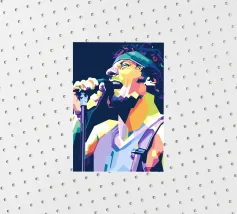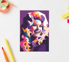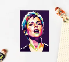 Un ritratto vibrante e geometrico di Sinead O'Connor in stile WPAP, caratterizzato da forme audaci e angolari e da un'impressionante gamma di colori vivaci e contrastanti. L'opera cattura i suoi tratti iconici, come la testa rasata, gli occhi penetranti e la forte espressione facciale, utilizzando blocchi di colore nitidi e frammentati. La composizione enfatizza la profondità e l'emozione mantenendo l'estetica pop-art cubista distintiva di WPAP, creando un tributo visivamente dinamico e moderno alla leggendaria cantante.