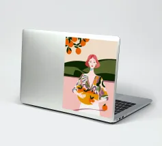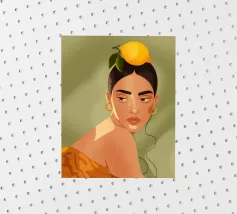This artwork features a person with short blonde hair wearing a floral jacket and holding a book. The bright yellow background enhances the chic and stylish essence.