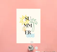 Siete pronti per una vacanza e avete voglia di sole, mare e spiaggia. Allora questo motivo con alba, palme, cocktail rinfrescanti, ananas fresco e conchiglie è proprio quello che fa per voi. Detto umoristico per l'estate. Concedetevi più spiaggia e preoccupatevi di meno.