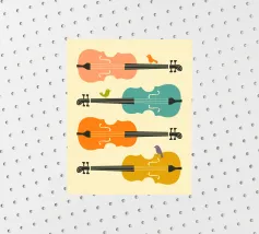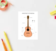 Esplora la bellezza degli strumenti a corda con questa dettagliata tabella didattica che presenta violino, violoncello, viola, chitarra, arpa e ukulele.