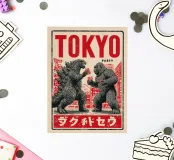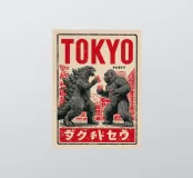 Una decostruzione ironica dei miti pop-culturali dell'orrore: nello stile di una linoleografia stampata a mano, l'opera combina l'estetica retrò dei vecchi manifesti giapponesi dei film di serie B e il fascino rustico della tradizione americana della xilografia. Godzilla e King Kong, i titani della distruzione, non sono qui in battaglia, ma in una posa assurda e amichevole, brindando con tazze rosse. La texture ruvida e le linee marcate danno energia all'immagine. Una dichiarazione audace e umoristica per i collezionisti che amano la forza grafica con un tocco di cultura pop.