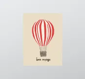 Il motivo mostra la scritta "Bon Voyage" sotto una mongolfiera a strisce bianche e rosse. Il design minimalista su sfondo beige ricorda i poster di viaggio francesi e irradia leggerezza e senso di avventura. Un murale moderno e affascinante per tutti coloro che amano i viaggi e l'avventura.