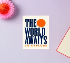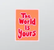 "Il mondo è tuo!" - Un avventuroso motivo estivo nelle vivaci tonalità del rosa, del rosso e dell'arancione. Questo disegno tipografico ispira viaggi ed esplorazioni, mentre il carattere audace incarna libertà e possibilità.