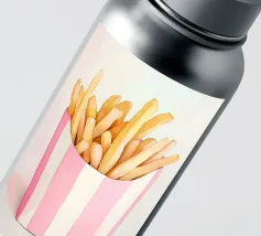 Adesivi realizzati in film PP/PET con laminazione protettiva e diverse tipologie di superficie.