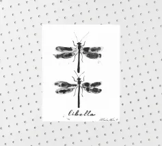 Questa allegra illustrazione di una libellula con l'arguto testo rosa "Sum Sum Sum" cattura la leggerezza e la giocosità della natura in modo minimalista.