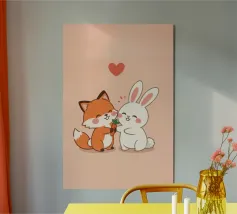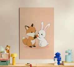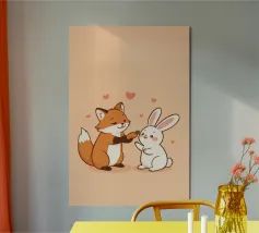 La volpe Voxy abbraccia dolcemente il suo piccolo amico di neve sotto il sole invernale. Colori tenui, impronte giocose e un'accogliente scena innevata rendono quest'opera d'arte perfetta per le camerette dei bambini, le nursery e gli amanti dell'arredamento invernale. Un'illustrazione che fa sciogliere il cuore, piena di amicizia e calore.