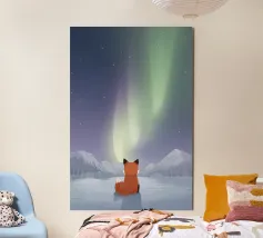 La volpe Voxy abbraccia dolcemente il suo piccolo amico di neve sotto il sole invernale. Colori tenui, impronte giocose e un'accogliente scena innevata rendono quest'opera d'arte perfetta per le camerette dei bambini, le nursery e gli amanti dell'arredamento invernale. Un'illustrazione che fa sciogliere il cuore, piena di amicizia e calore.