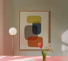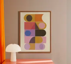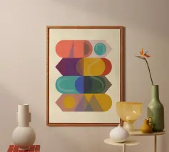 Questo poster d'arte moderna mostra forme sovrapposte e arrotondate in colori vivaci come il blu, il rosso, l'arancione, il rosa e il giallo, apparentemente fluttuanti e interconnesse. L'effetto trasparente dei colori crea profondità e leggerezza allo stesso tempo. Ideale per stanze minimaliste, uffici creativi o come elegante elemento di spicco nella parete della vostra galleria.