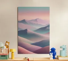 Questa rappresentazione artistica del Kangchenjunga mostra un gioco ipnotico di linee fluide e sfumature delicate, che evocano la bellezza eterea della terza vetta più alta del mondo. Le morbide tonalità pastello si fondono perfettamente con le cime bianche, creando un'atmosfera da sogno. Sottili linee curve tracciano le creste della montagna, illustrando l'armonia tra natura e astrazione. Quest'opera d'arte cattura la presenza maestosa della montagna in modo minimalista ma evocativo, ideale per un'estetica contemporanea e moderna.
