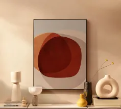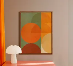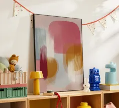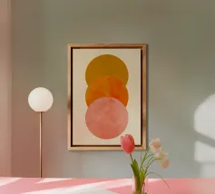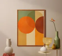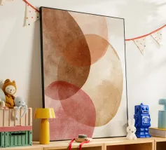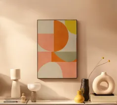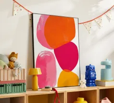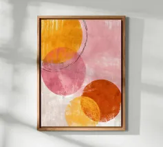Opere d'arte di design grafico con forme grandi, stratificate e arrotondate in tonalità vivaci di acquerello. Tonalità primaverili ed estive di rosa lampone, verde menta, crema di vaniglia e arancio fresco. Arte minimale in stile nordico.