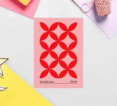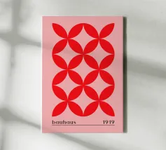 Un'audace stampa d'arte astratta con uno sfondo rosa tenue e suggestive forme geometriche rosse. La composizione minimalista fonde calore ed energia con un tocco artistico moderno, creando un accento vibrante ed elegante per qualsiasi ambiente. Perfetto per gli interni contemporanei, gli amanti del design e gli appassionati di colori audaci. arte astratta rosa rossa, poster di forme geometriche, stampa moderna minimalista, opera d'arte dai colori audaci, decorazione murale contemporanea, design geometrico rosso, sfondo rosa tenue, composizione astratta moderna, arte murale a blocchi di colore, stampa artistica per la casa, poster di ispirazione retrò, arredamento moderno elegante, geometria minimale.