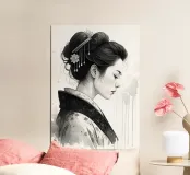 Acquerello monocromatico del profilo di una geisha | Ispirazione giapponese alluminio dibond