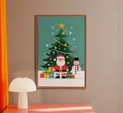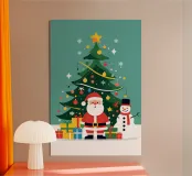 Albero di Natale con Babbo Natale e pupazzo di neve alluminio dibond