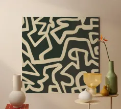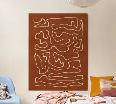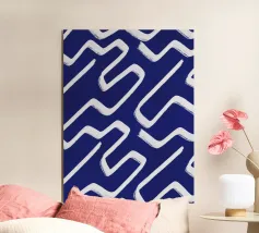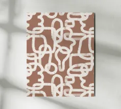 Motivo artistico astratto con sfondo lavanda e linee bianche stravaganti e labirintiche che ricordano un codice segreto. Questo disegno unico e creativo è perfetto per essere utilizzato in vari progetti grafici, tra cui sfondi di siti web, copertine di libri o disegni tessili, e piacerà a chiunque sia alla ricerca di motivi intricati e stimolanti.