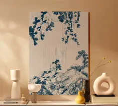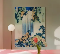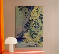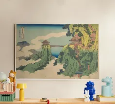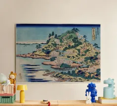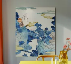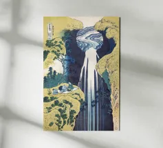 Una veduta serale del Fuji (Fuji no Yūkei) di Utagawa Kuniyoshi è una stampa ukiyo-e tranquilla e d'atmosfera che immortala il Monte Fuji al tramonto. Una luce tenue e sfumata si posa sulla montagna, creando un delicato contrasto tra il cielo che si fa sempre più profondo e il tranquillo paesaggio sottostante. L'abile disegno di Kuniyoshi e le sottili transizioni di colore trasmettono un senso di calma, riflessione e riverenza senza tempo per la natura. Quest'opera d'arte esprime magnificamente l'atmosfera tranquilla e poetica della sera nel paesaggio più iconico del Giappone.