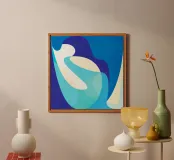 Una moderna stampa astratta blu con forme di ispirazione retrò e semplici linee zen. I toni freddi del blu e la geometria minimalista creano un'estetica calma ed equilibrata che dona armonia a qualsiasi spazio. Perfetto per interni moderni, di metà secolo o minimalisti che cercano un tocco di stile tranquillo. arte astratta blu, stampa di forme retrò, decorazione murale minimalista, arte a linee zen, opera d'arte blu fredda, design geometrico moderno, poster astratto retrò, stampa moderna semplice, arte murale rilassante, arredamento moderno di metà secolo, stampa murale scandinava, poster blu minimalista, arte astratta contemporanea, toni blu morbidi, linea geometrica