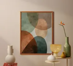Autumn Stones | Minimalist Fall Colored Shapes Abstract alluminio dibond con Cornice Artbox