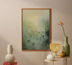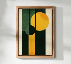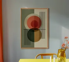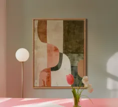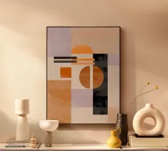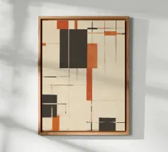 Quest'opera d'arte incarna l'essenza della geometria Bauhaus, intrecciando linee verticali e orizzontali in un gioco ritmico di equilibrio e contrasto. Le tonalità autunnali della terra - rosso ruggine, verde oliva, ocra e beige caldo - creano profondità e armonia attraverso la griglia strutturata. Minimale ma potente, cattura il dialogo senza tempo tra forma e colore, evocando sia il calore stagionale che la chiarezza modernista.
