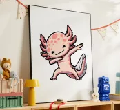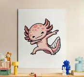 Un simpatico axolotl è raffigurato mentre esegue una posa da dab