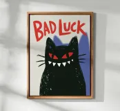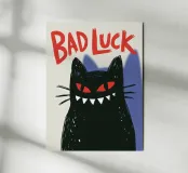 Un gatto nero con gli occhi rossi e un ghigno dentato: questo disegno gioca con le superstizioni con umorismo e audacia. La scritta "Bad Luck" accentua il suo lato ribelle e stravagante. Ideale per gli amanti delle grafiche incisive, del simbolismo mistico, di Halloween o del secondo grado. Perfetto per un arredamento originale dal sapore dark-pop, che unisce la sfortuna a un devastante stile felino.