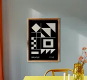 Un poster digitale molto complesso che celebra la fondazione del Bauhaus nel 1919. Questo disegno monocromatico presenta una griglia frammentata di forme geometriche - quadrati, triangoli e forme annidate - in nero e bianco sporco ad alto contrasto. La composizione comprende un motivo a scacchiera, quadrati ruotati e triangoli astratti, tutti definiti da sottili linee bianche. Questo pezzo incarna l'estetica funzionalista e sperimentale del modernismo minimalista. Questo download digitale di alta qualità vanta 7000x5000 pixel a 300 dpi, garantendo una chiarezza eccezionale e una qualità di stampa superiore.